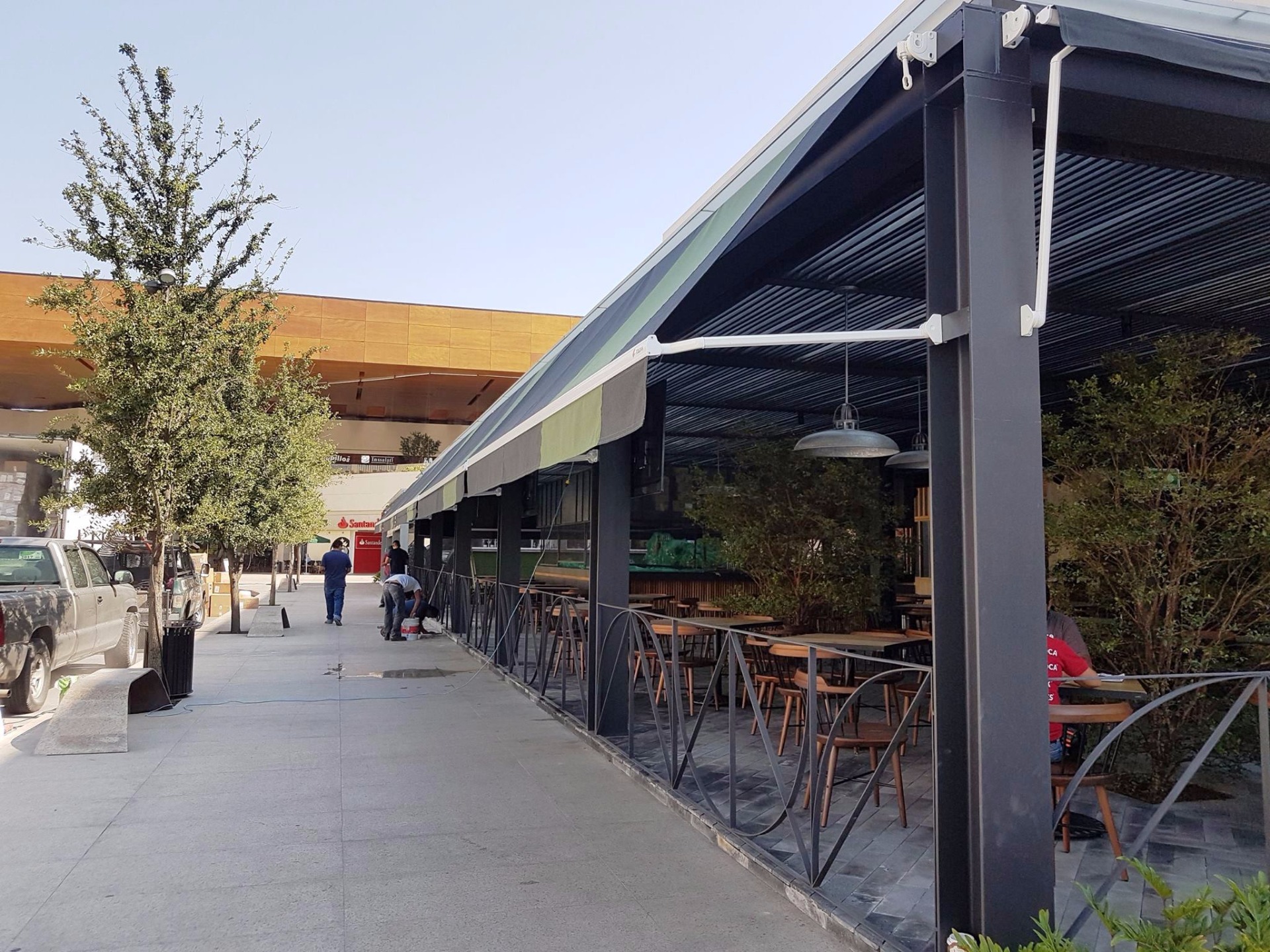 Requerimiento de Toldos de Brazos retractiles para cubrir y dar cierta estetica al área del restaurante, se logra funcionalidad y servicio en terraza protegiendo a los comensales para lograr una estancia agradable y placentera mediante nuestros productos.